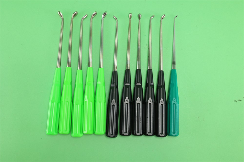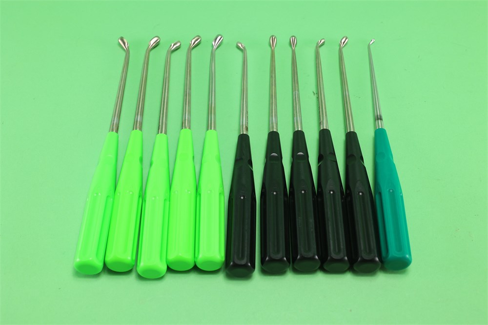 5qty CS-0161 Reverse Curette, 45 Deg, 6 Head, 120 MM (4.7") Wrk/length, 254 MM (10"), Light Green
